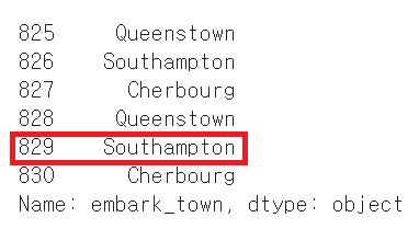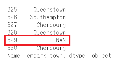 df.embark_town.fillna(mos_fruq, inplace=True) # NaN을 가장 많이 나오는 값으로 변경