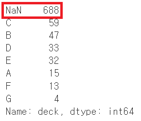 # deck 열 - 891개 중 688개의 NaN값 -> 203개의 데이터 존재