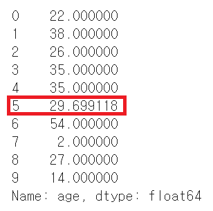 ▶ age열의 NaN 값을 삭제하지 않고 다른 나이 데이터의 평균으로 변경