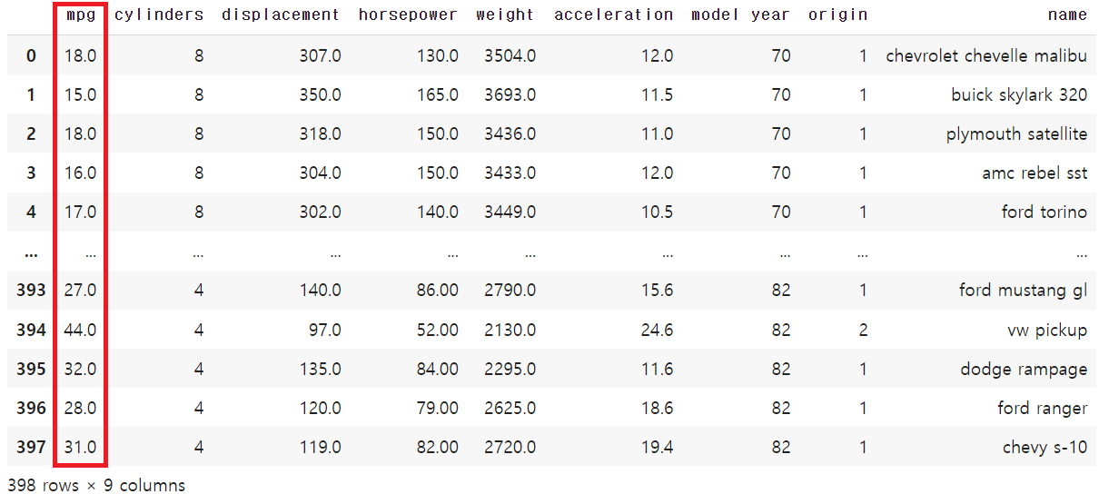 df = pd.read_csv('/content/drive/MyDrive/ Encore Prac/auto-mpg.csv', header=None)