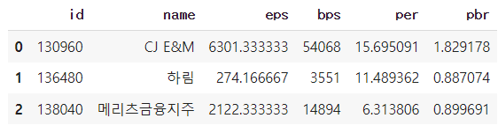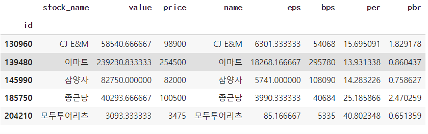 # df1을 기준으로 df1의 'stock_name'열과 df2의 'name'열을 병합