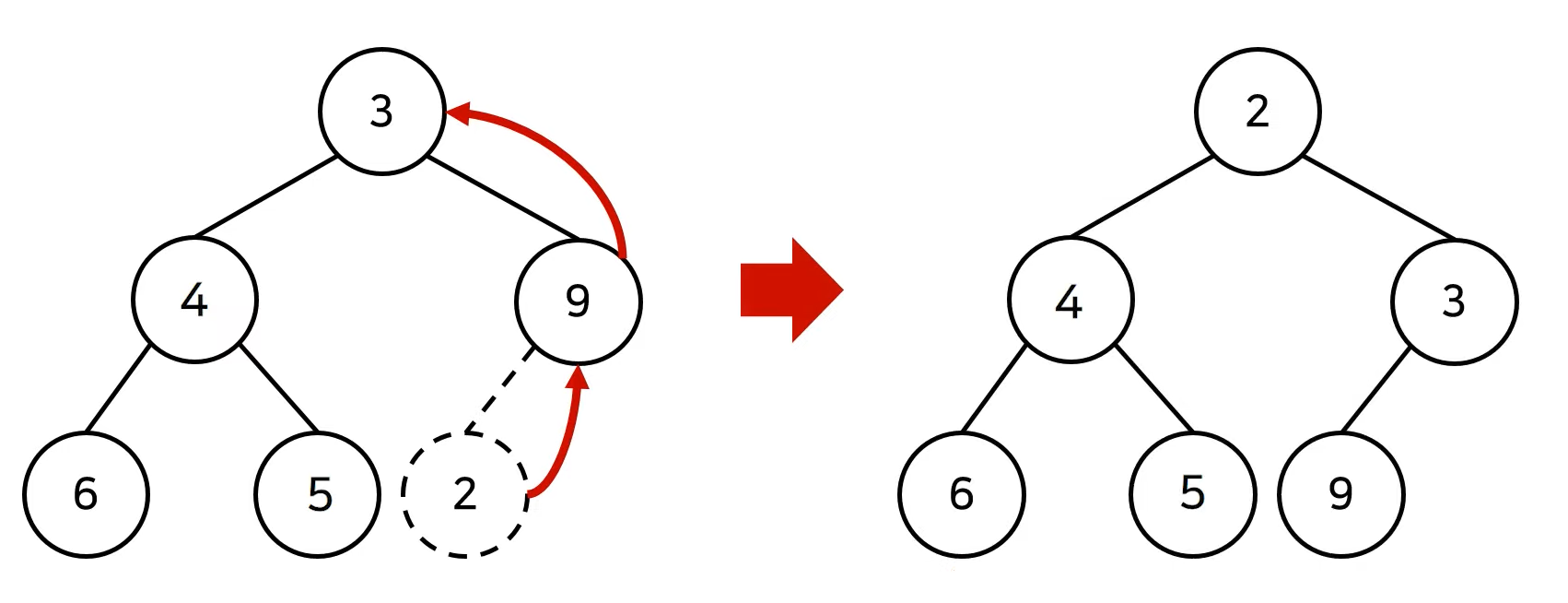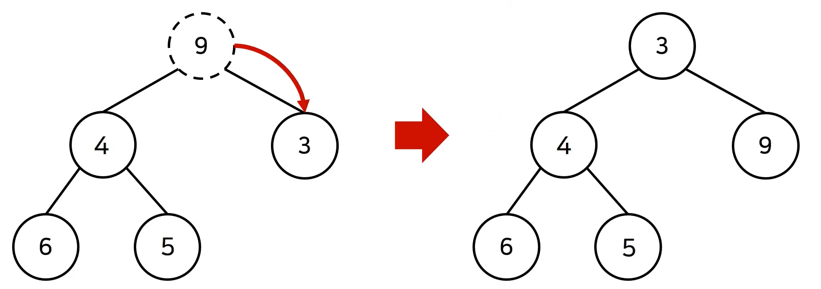 원소를 제거할 때는 가장 마지막 노드가 루트 노드의 위치에 오도록 함.