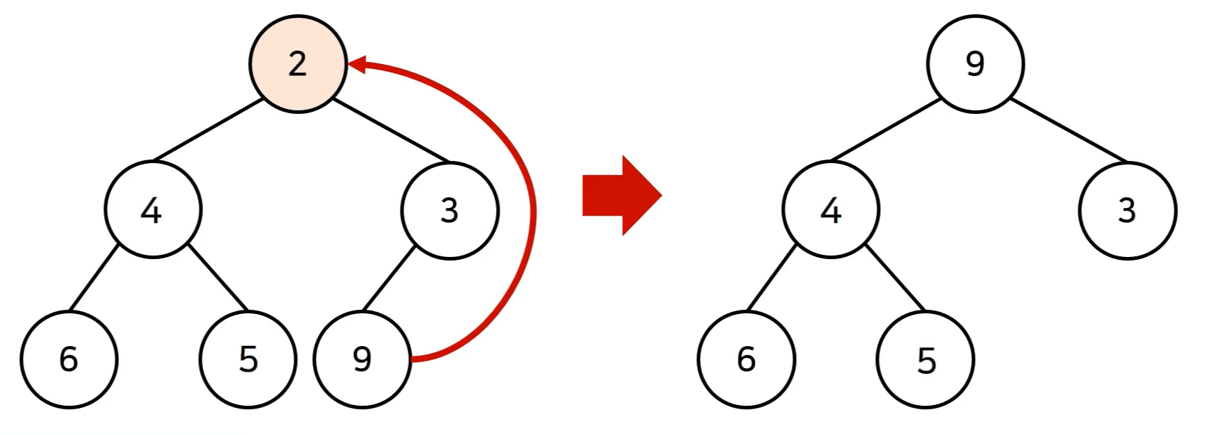 - 힙에서는 항상 루트 노트(rooot node)를 제거