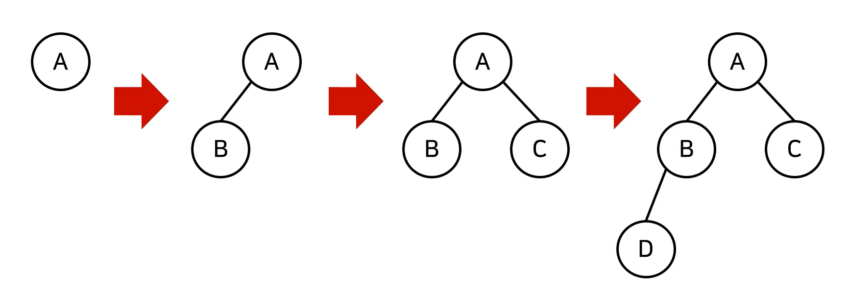 루트(root) 노드부터 시작하여 왼쪽 자식 노드, 오른쪽 자식 노드 순서대로 데이터가 차례대로 삽입되는 트리(tree)를 의미
