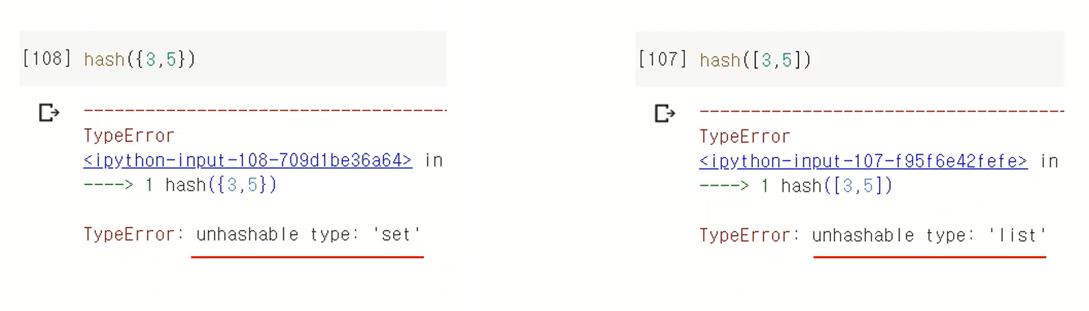 ※ 주의! 해시 불가능 타입