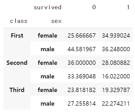 grouped = df.groupby(['class', 'sex'])
