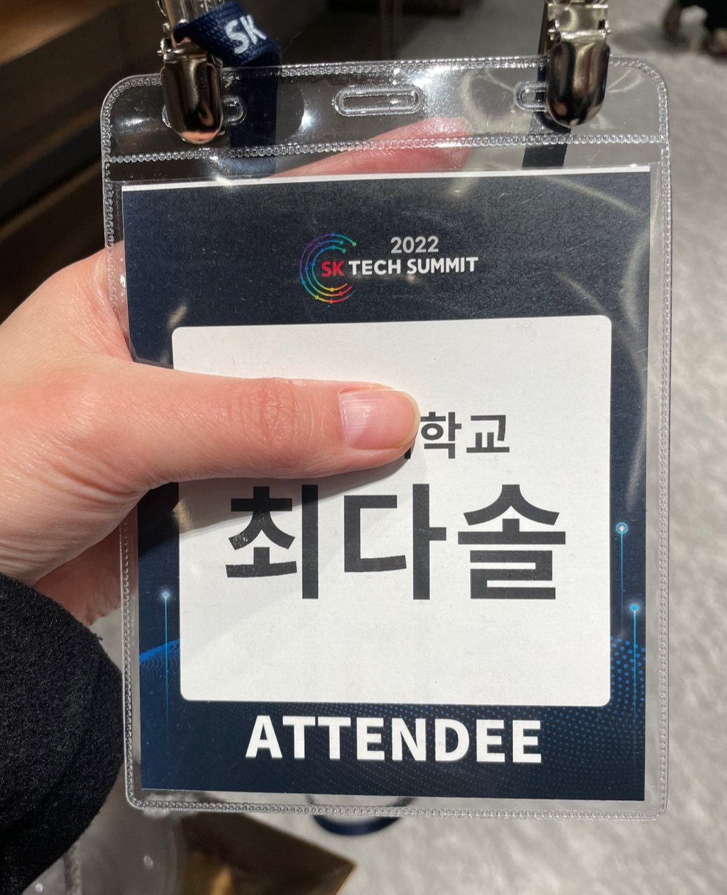 참가자 명찰을 받고 입장했다. 마땅한 소속이 없어 졸업한 대학교를 적었다....ㅎ