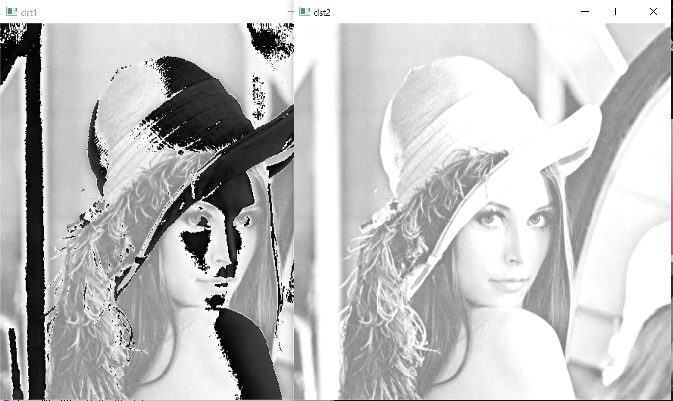 dst7 = cv2.compare(dst1, dst2, cv2.CMP_LT) # 요소가 작음