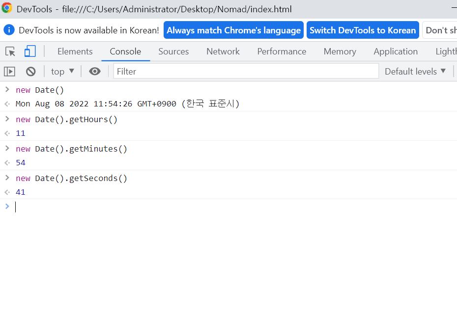 이제 시계를 만드는 데 필요한 재료를 얻기 위해 Date라는 Object를 알아봐야 한다.