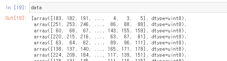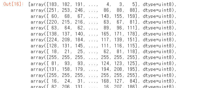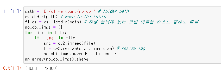 일단 해당 폴더에서 jpg 파일을 다 가져와서 flatten을 한 후 list에 저장하였다.