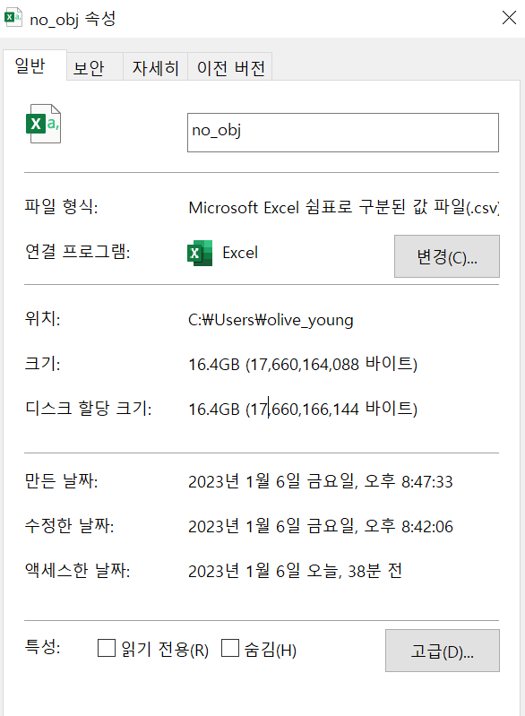 혼자 공부하면서 다루던 샘플 데이터들과는 차원이 다른 용량에 깜짝 놀랐다. 아직 1차 수집만 완료된 상태인데...