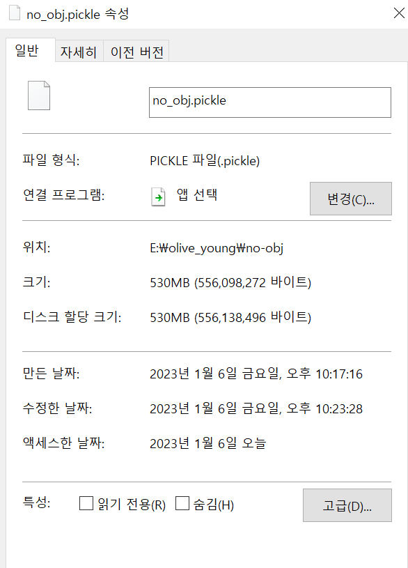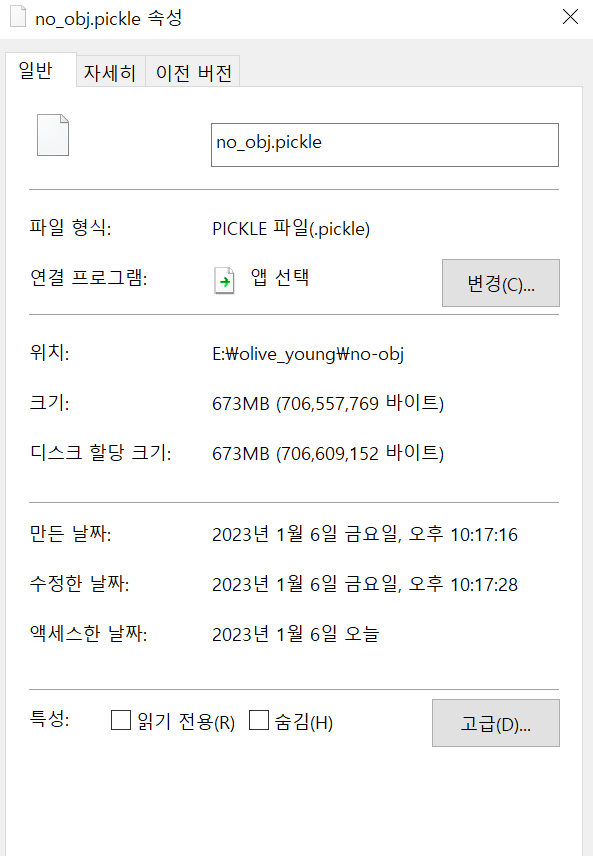 Pickle로 저장하니 용량이 672MB로 눈에 띄게 준 것을 확인할 수 있다.
