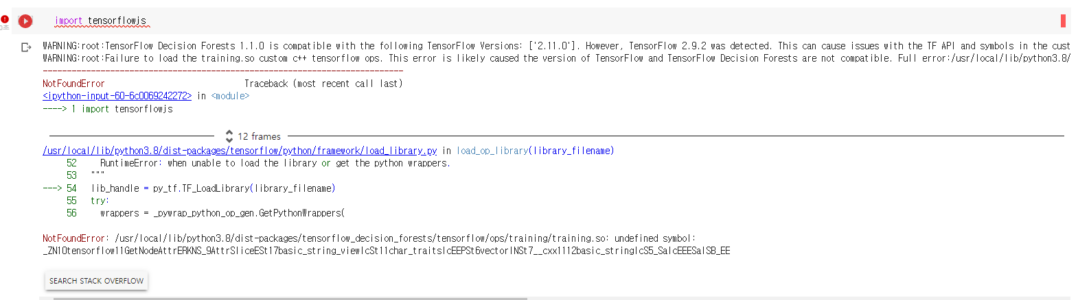TensorFlow Decision Forests 와 TensorFlow 버전이 맞지 않는다는 소리였다.