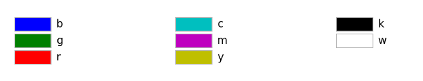 plot_colortable(mcolors.BASE_COLORS, ncols=3, sort_colors=False)