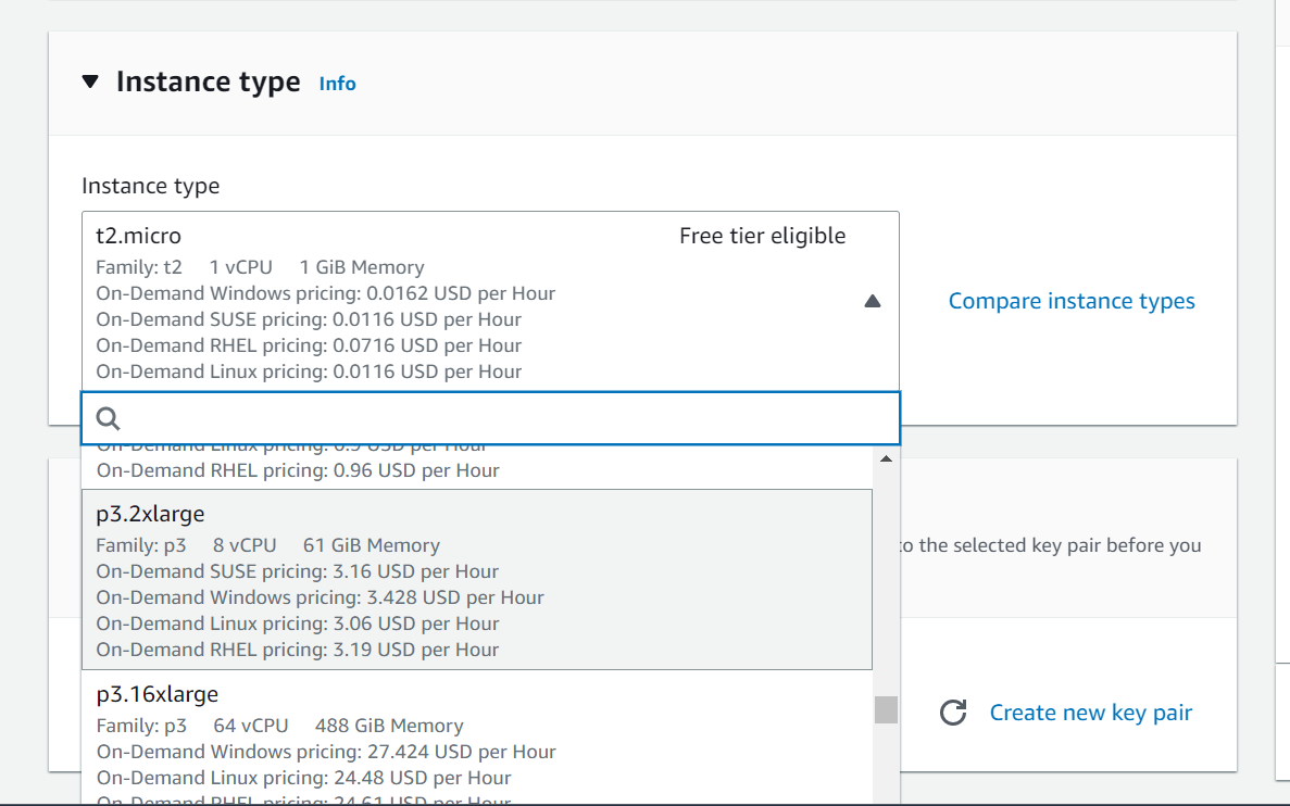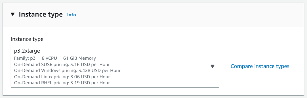 나는 P3.2xlarge를 선택했다.