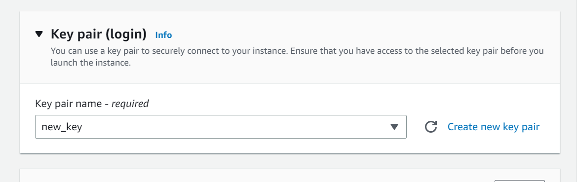 key pair가 없다면 Create new key pair 를 눌러 만들어 주면 된다.