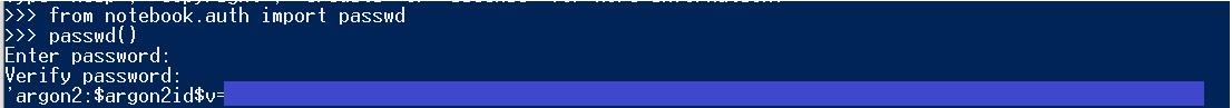 위와 같이 패스워드를 입력하면 해시값이 생성되는데, Jupyter Notebook 설정에 사용할 값이니 꼭 복사해서 저장해 둔다.