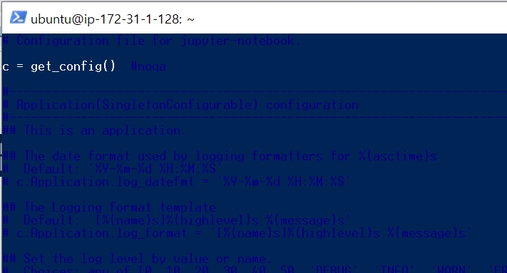 sudo vi /home/ubuntu/.jupyter/jupyter_notebook_config.py