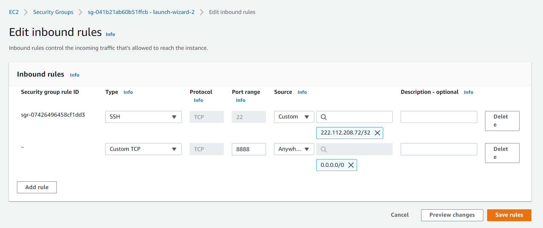 이제 jupyter notebook을 실행하기 위해 port를 열어주어야 한다.