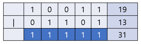 // z = 0001 0001 | 0000 1111 = 0001 1111 = 31(십진수)