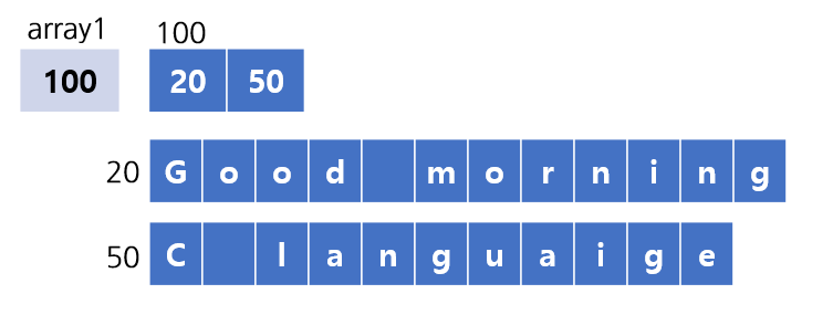 - 배열의 요소가 포인터(메모리 주소)로 이루어진 것