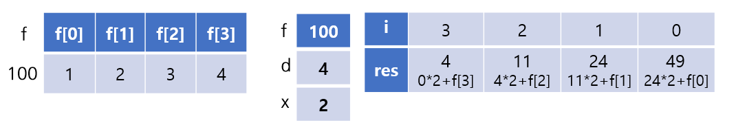 res = res * x + f[i];