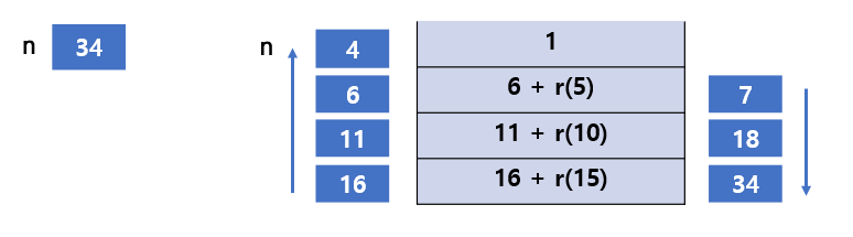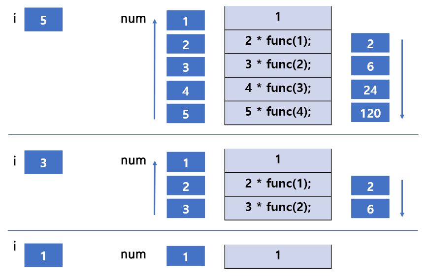 - 함수 내에서 자기의 함수를 다시 호출하는 함수