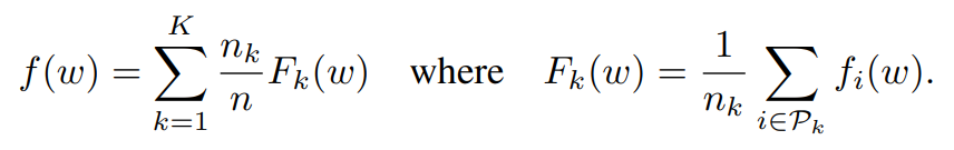 만약 데이터 분포가 IID라고 가정한다면, ${{{E}_{{P}_k}\left[{F}_k\left(w\right)\right]\ =\ f\left(w\right)}}$ 이 처럼 클라이언트들의 기댓값이 손실 함수와 같아진다.