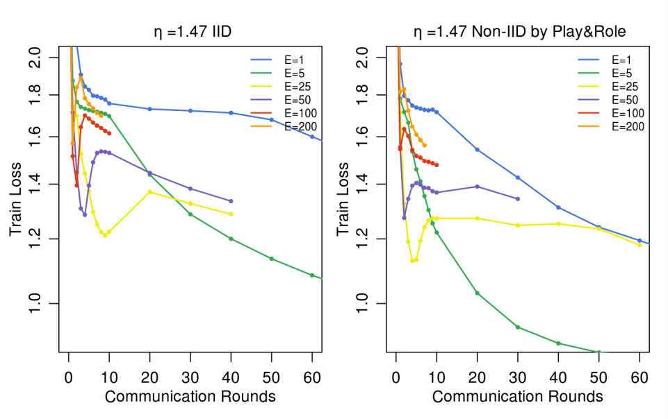 E : 각 라운드에서 각 클라이언트가 로컬 데이터셋에 대해 수행하는 패스 수 (local epoch)