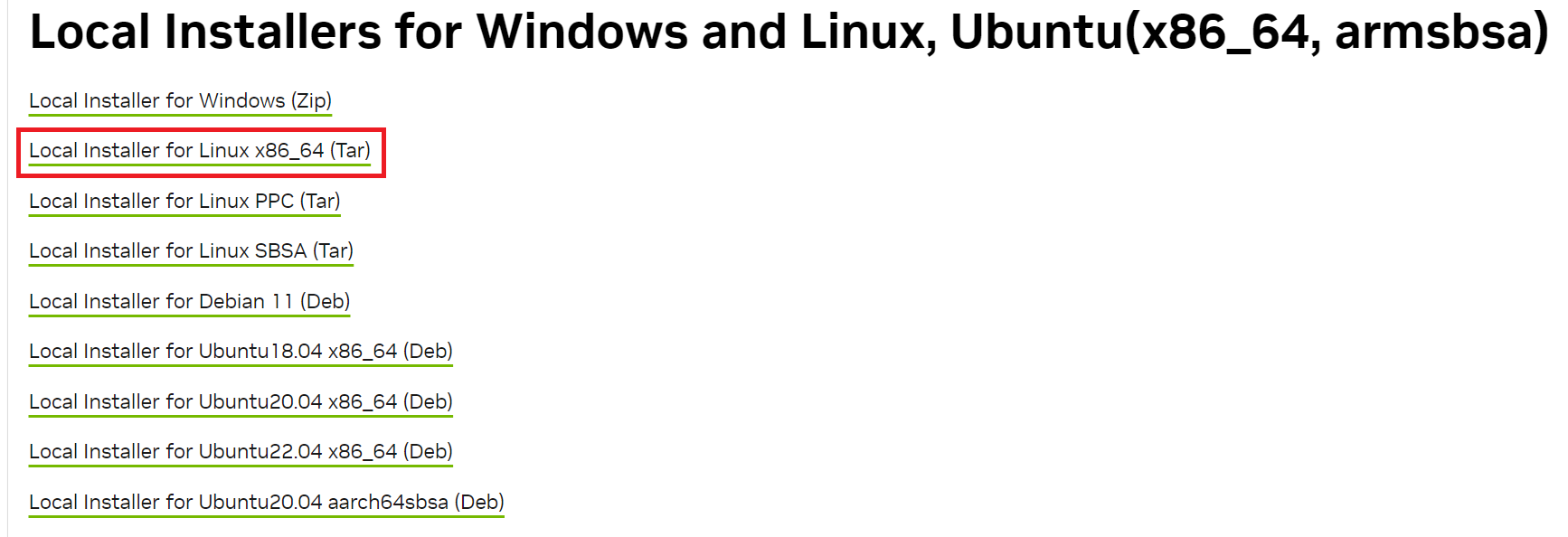 그러나 저의 경우 CUDA는 11.5, 또 Utuntu 버전은 22.04이기 때문에 설치가 가능한 가장 가까운 버전을 선택했습니다.