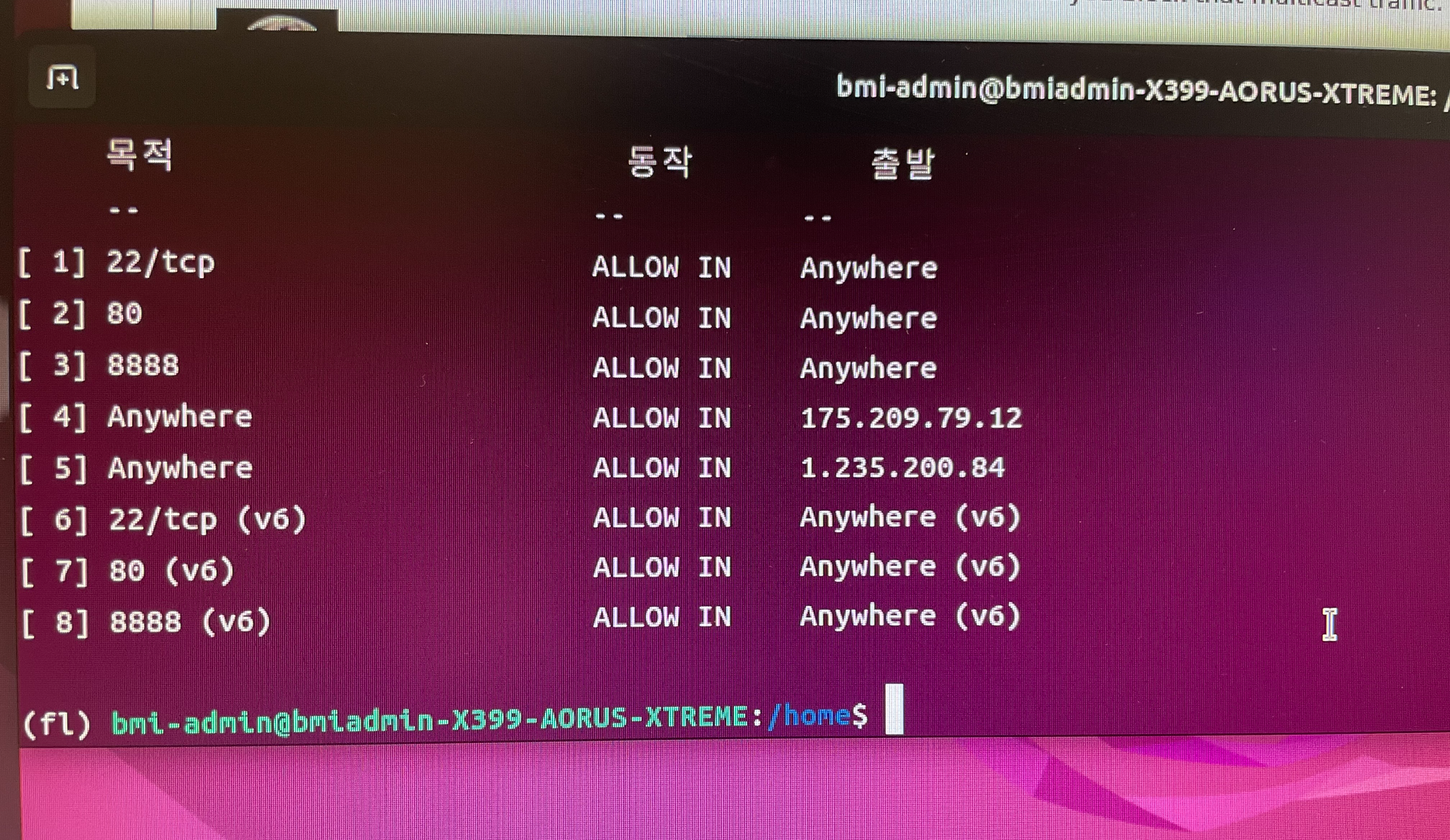 다시 방화벽 설정 상태를 확인해 보니 무사히 추가가 되었습니다.