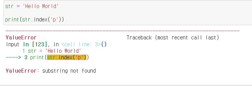 반면에 index()의 경우 해당 문자가 존재하지 않을 때 error를 발생시킨다.