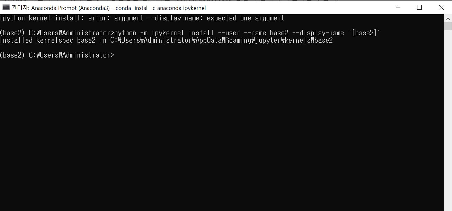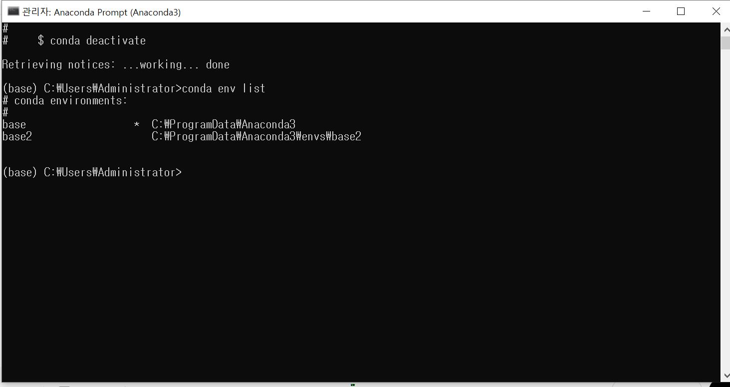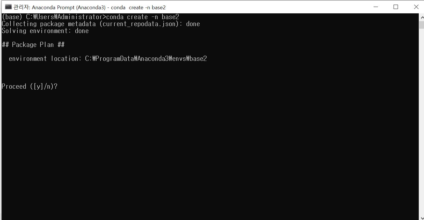 'base2' 라는 이름의 가상환경을 만들어 보자.