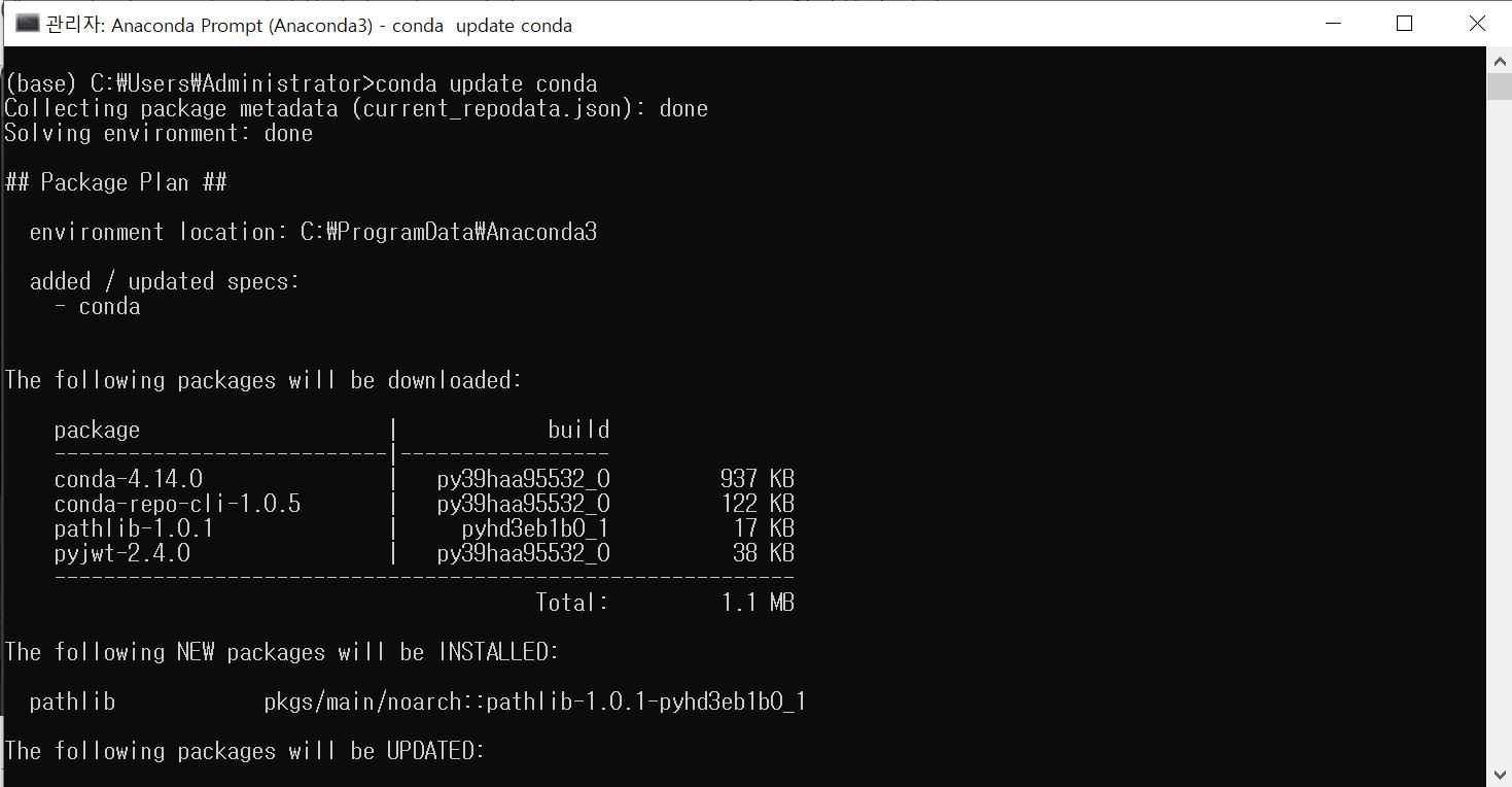 ▶ anaconda promt 실행 후 최신 버전으로 업데이트
