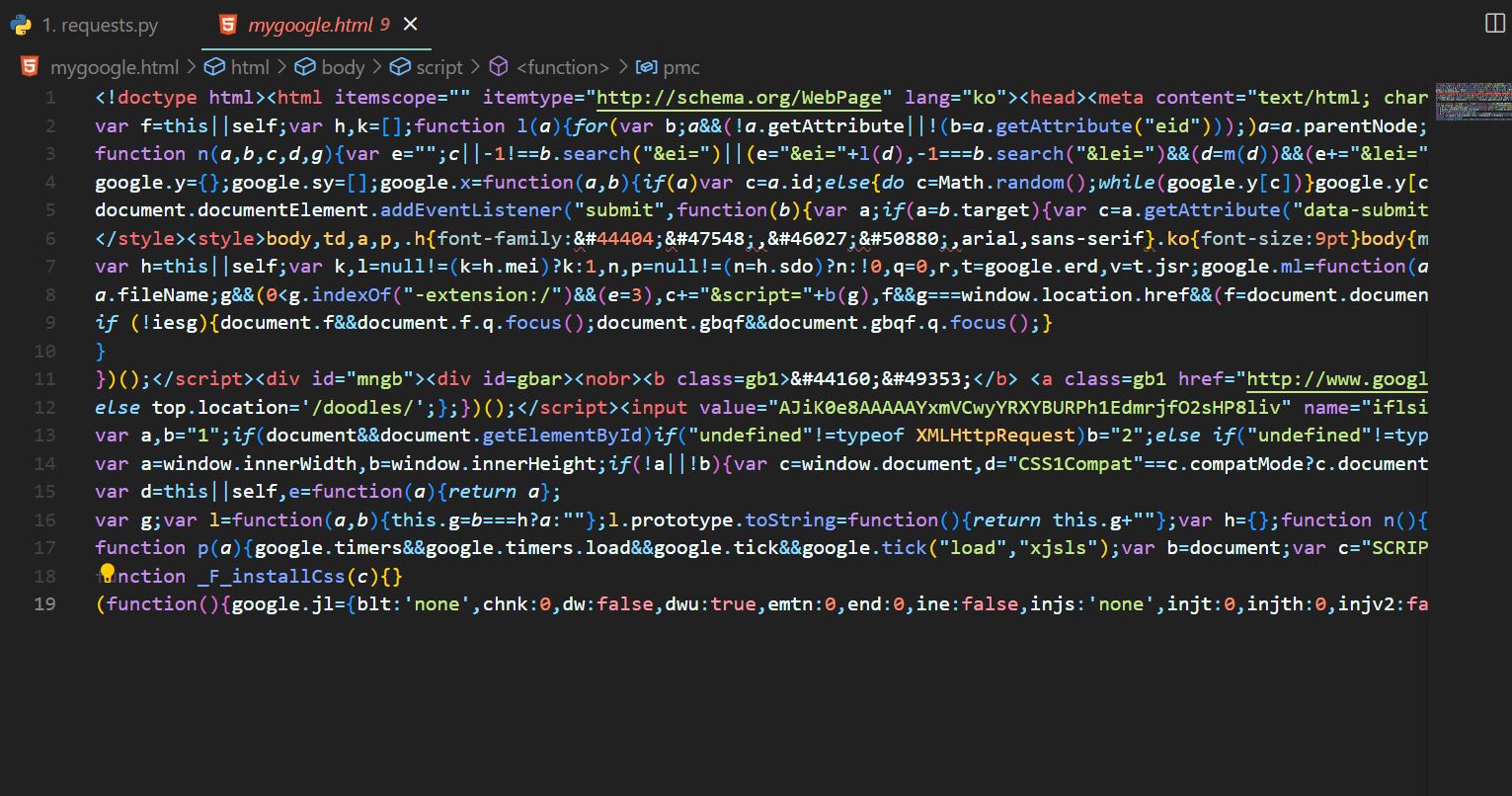 이제, 제대로 작동하는지 확인하기 위해 구글 사이트의 텍스트 정보들을 파일로 저장을 해보자.