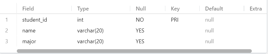 DESCRIBE student;