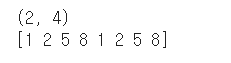 print(x) # 배열 x를 4행 2형의 구조로 변경(1차원 -> 2 차원)