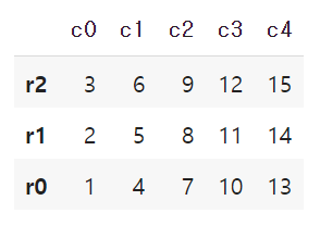 df.reindex(['r2', 'r1']) #원래 있던 index를 사용할 경우 데이터가 같이 따라감.
