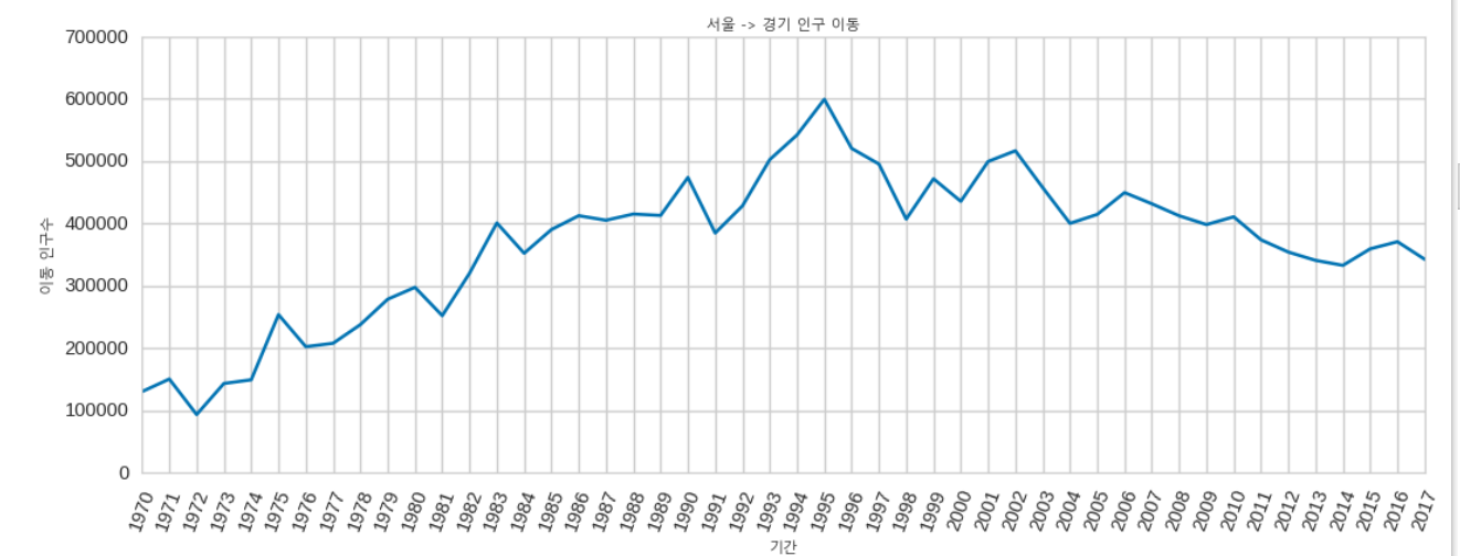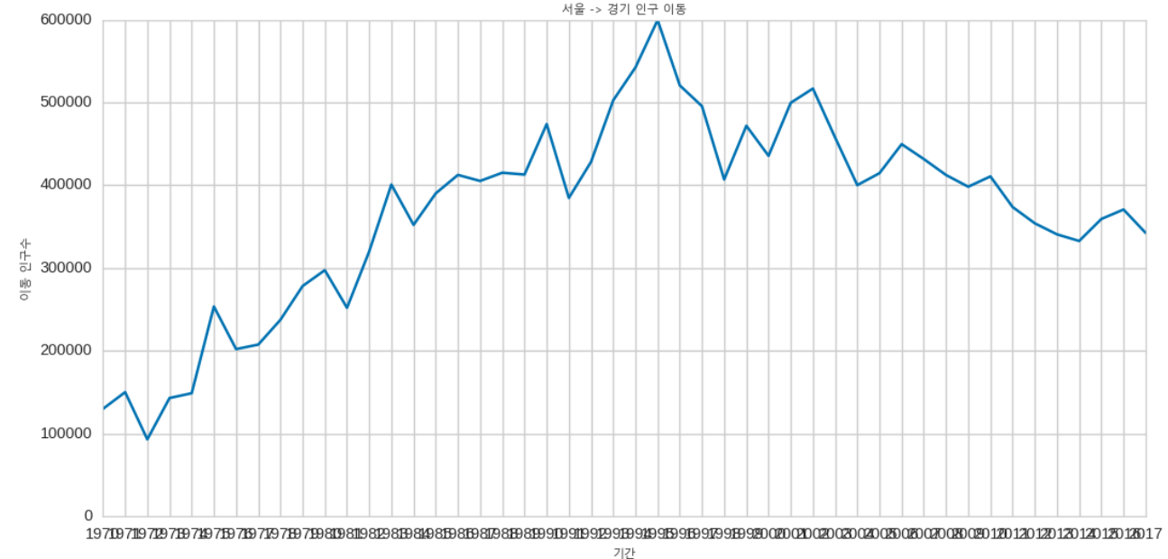 plt.title('서울 -> 경기 인구 이동',fontproperties=mg) #제목 지정